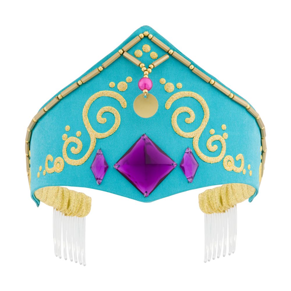If you like, you can buy individual tiaras at Party City, or you can make your own crowns using fun foam craft sheets. For Jasmine use glittered foam and decorate in adhesive jewels you find at the Dollar Store.