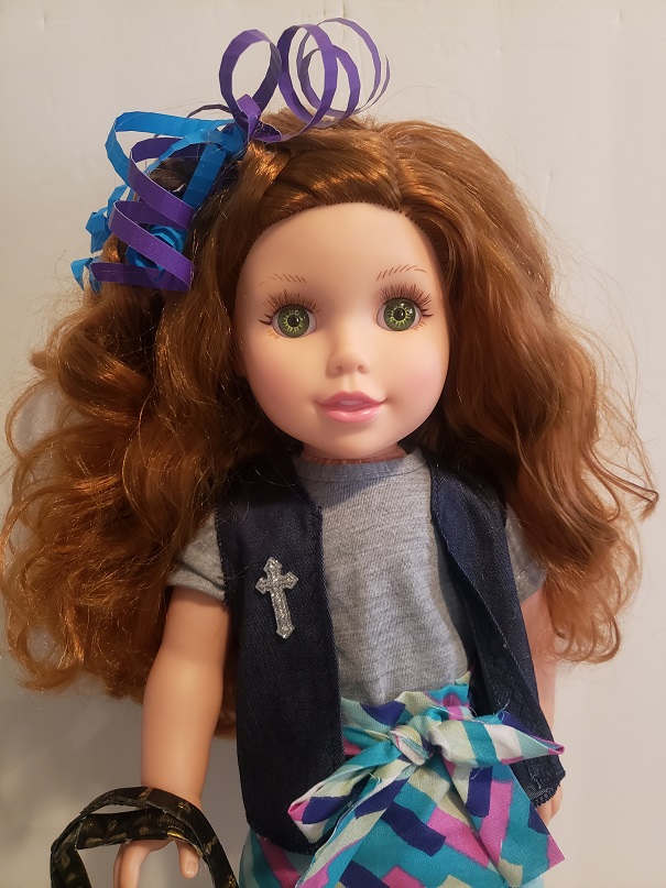 The show must go on! I made the denim vest more streamlined, it was too boxy, then I added a jeweled cross.